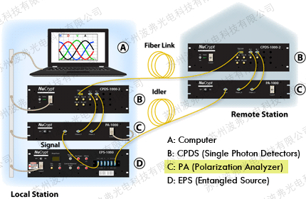 PA-1000 是一種計算機控制的光纖耦合偏振分析儀,由一個校準的偏振控制器和一個線性偏振器或一個偏振分束器組成。 四個或更多可變波片的光軸相互成 45° 角,執行偏振控制。 它通常用于在測量光的偏振糾纏態時選擇所需的基態。 PA-1000 可以操作通過 USB 端口控制的獨立設備,也可以與其他設備(如 NuCrypt CPDS-1000 檢測系統和 NuCrypt Quantum 系統控制軟件)集成,以實現自動量子測量,例如兩 光子干涉 (TPI) 條紋和量子態斷層掃描 (QST)。