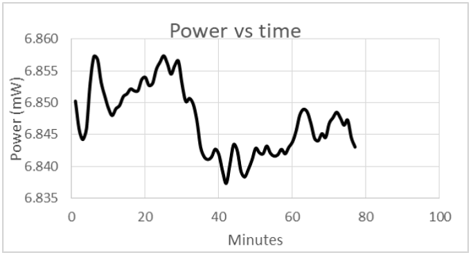 功率與時間的關系圖@(室溫,1.5h)顯示了出色的功率穩(wěn)定性,適用于插入損耗測試等應用。