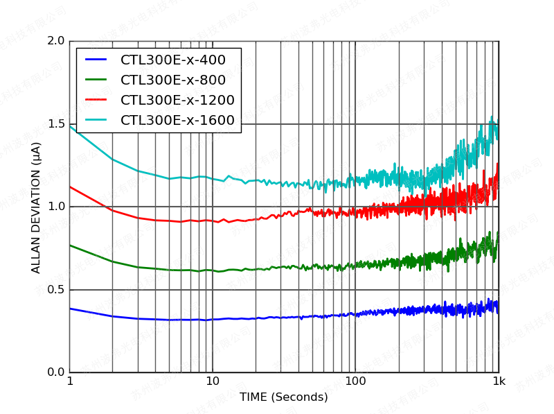 下圖顯示了CTL300E控制器在額定電流和600 mV激光驅(qū)動器壓降下工作的電流噪聲密度。