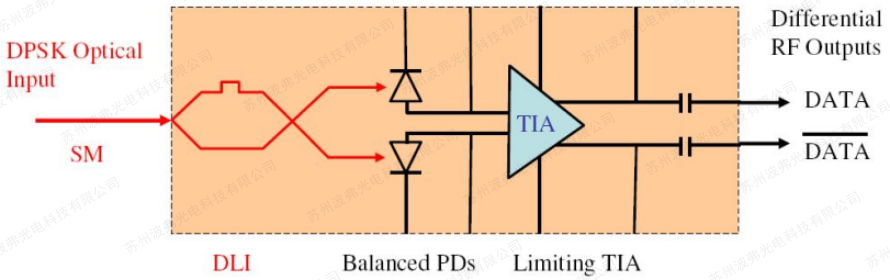 集成的DPSK接收器將延遲線干涉儀(DLI)與平衡接收器相結合,以在蝶形封裝中實現緊湊的尺寸。與分立元件相比,集成接收器將來自DLI的光輸出直接耦合到平衡光電探測器,除了消除光纖路由和匹配之外,還可以減少插入損耗和低通道偏移。