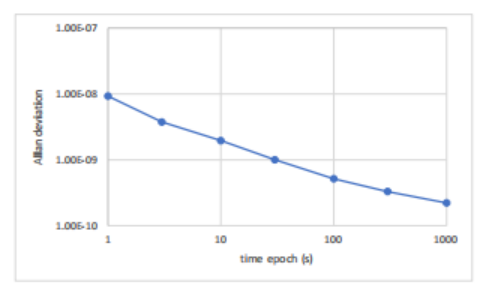 l 當(dāng)τ=100秒時(shí),Allan偏差小于1e-9。 |