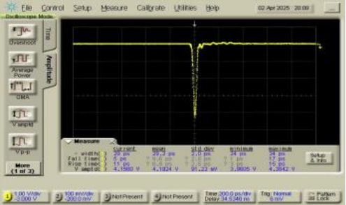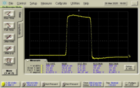 500ps脈寬 @時(shí)鐘頻率. 100kHz,輸出電平 6.5Vpp |