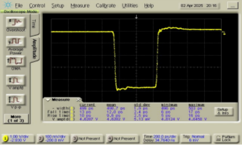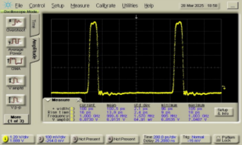 100ps脈寬 @時(shí)鐘頻率. 1GHz,輸出電平 6.8Vpp |